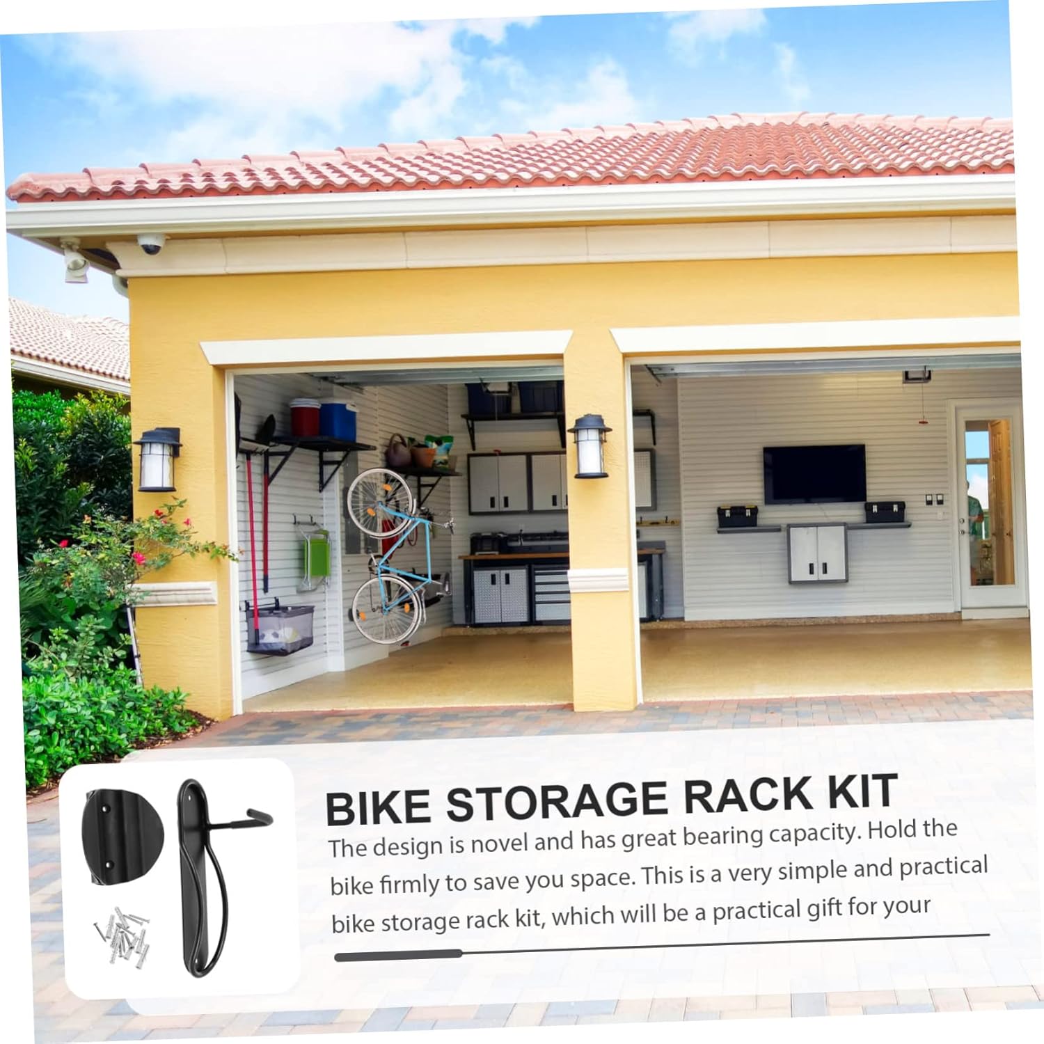Package Include 1 x Hook Holder 1 x The Rear Wheel Gasket 7 x Sets of Screws Features -Size: 30.00X14.00X8.00cm/ 11.79X5.50X3.14inch bike wall mount rack -Note: Load-bearing: 20kg bike holder. -Material: Steel bike wall mount -Color: Black Wear-resistant Bike Hanger -Complete configuration, easy to install, easy to use, you time hooks for hanging bicycles. -Made of high class steel, practical, durable, and will not be easily damaged bike mount for wall. -Fine workmanship, smooth and durable, safe and gentle, very friendly to your bike bike hanging hooks. -Designed for stationary bikes, simple and practical, and can provide more usable space bike wall hook. -Concise and stylish, professional and practical, with large carrying capacity, it will be your wall bike hanger.Goods Informationsturdy bike stand This product is bike hanger, made with excellent craftsmanship, has practical functions, is strong enough, and has a large carrying capacity, which can well meet your storage needs.Household Bike Holder This bike hanger provides maximum convenience for your storage and allows you to have more usable space