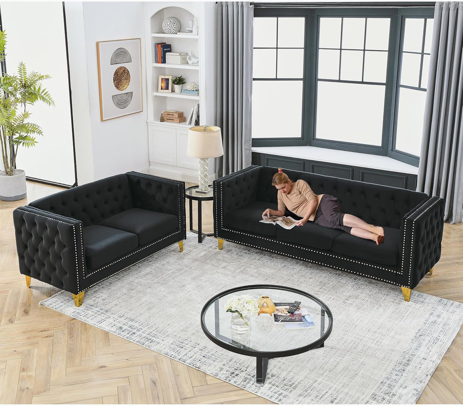 | Size | 81" 3-Seater + 58" Loveseat Velvet Sofa Set |