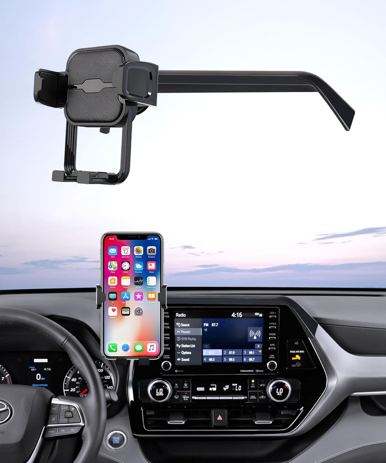 Specially designed for 2020 2021 2022 2023 2024 2025 2026 TOYOTA Highlander/Hybrid Accessories. This phone holder is installed as a replacement on the dashboard. NOTE: 【One - touch release】The Masergogo car phone holder is equipped with a quick - release button and adjustable clamping arms. It can lock or release your phone in just 0.3 seconds. Why choose our Car Phone Holder? Specially designed, compatible with vehicle models. Unified style, and reliable quality. Does not block the air vent. No need to look down at your phone. One-handed operation. Triangular fixation,Automatic locking. Car phone holder can 360°Rotate. About Customer Service: Our stands firmly behind its products and customer service. We Can provide 100% money back replacement guaranty. Any issues with your order, please contact us, we will respond within 24 hours. Place your order with GOGO Store today!