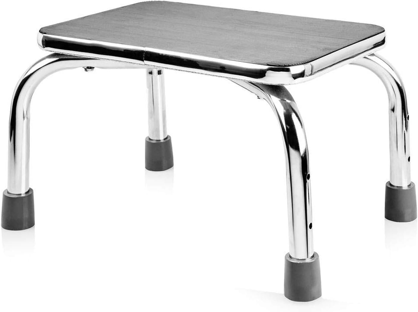 DMI STEP STOOL WITH HANDLE, SILVER AND BLACK MEDICAL STEP STOOL. Get the extra height youneed with stability and safety you can count on. DMI STEP STOOL WITH HANDLE IS GREAT FOR: Stepping up to reach high cupboards, Stepping up into bed, Stepping up into vehicles, Stepping into or out of a bathtub. FEATURES: Stability handle, Non-slip textured matting, Light weight design is easy to lift and move around. Use with or without the handle. 10 by 145 by 9 inches. Step height 9 inches. Recommended weight is 300 pounds. Step stool weight is 85 pounds. Do not over tighten as it could strip the threads.
