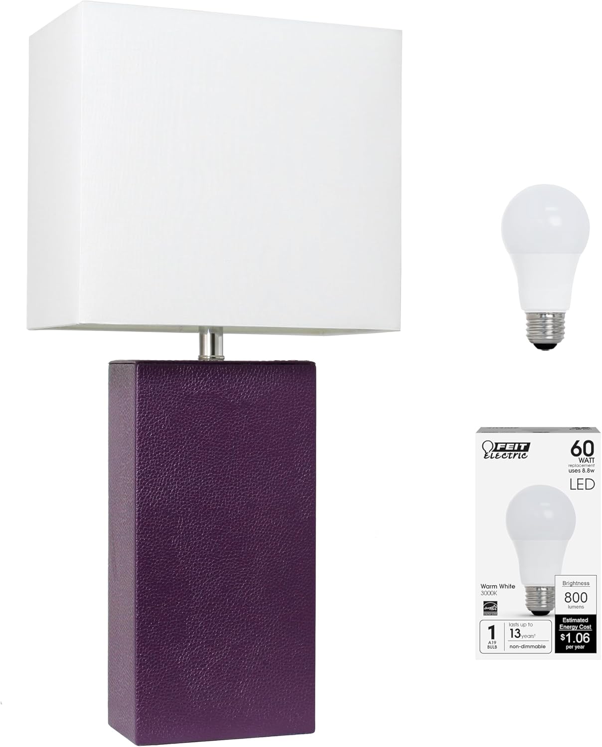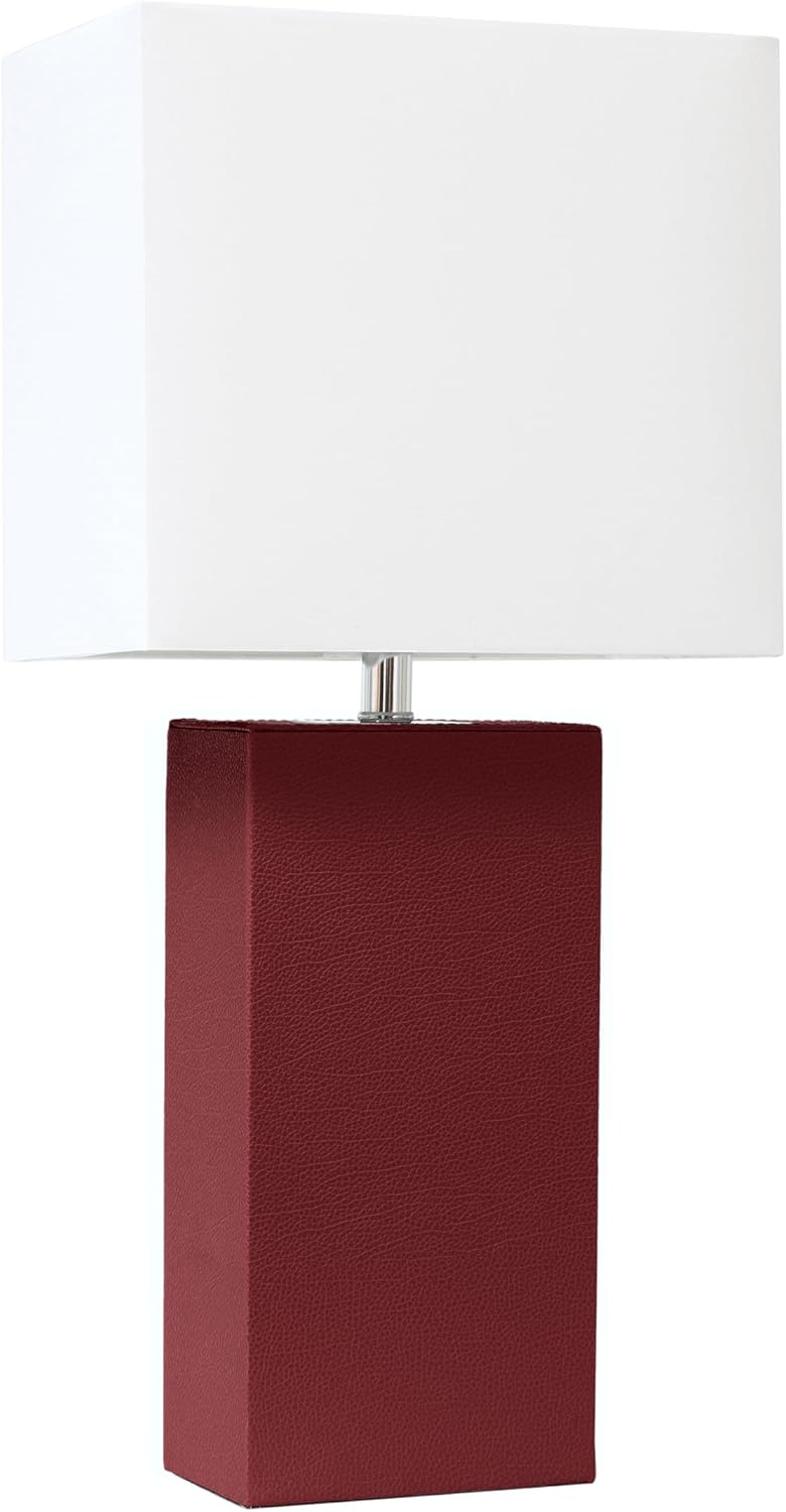 This fashionable table lamp, with its leather body and white fabric shade, will add style and pizzazz to any room. We believe that lighting is like jewelry for your home. Our products will help to enhance your room with elegance and sophistication.