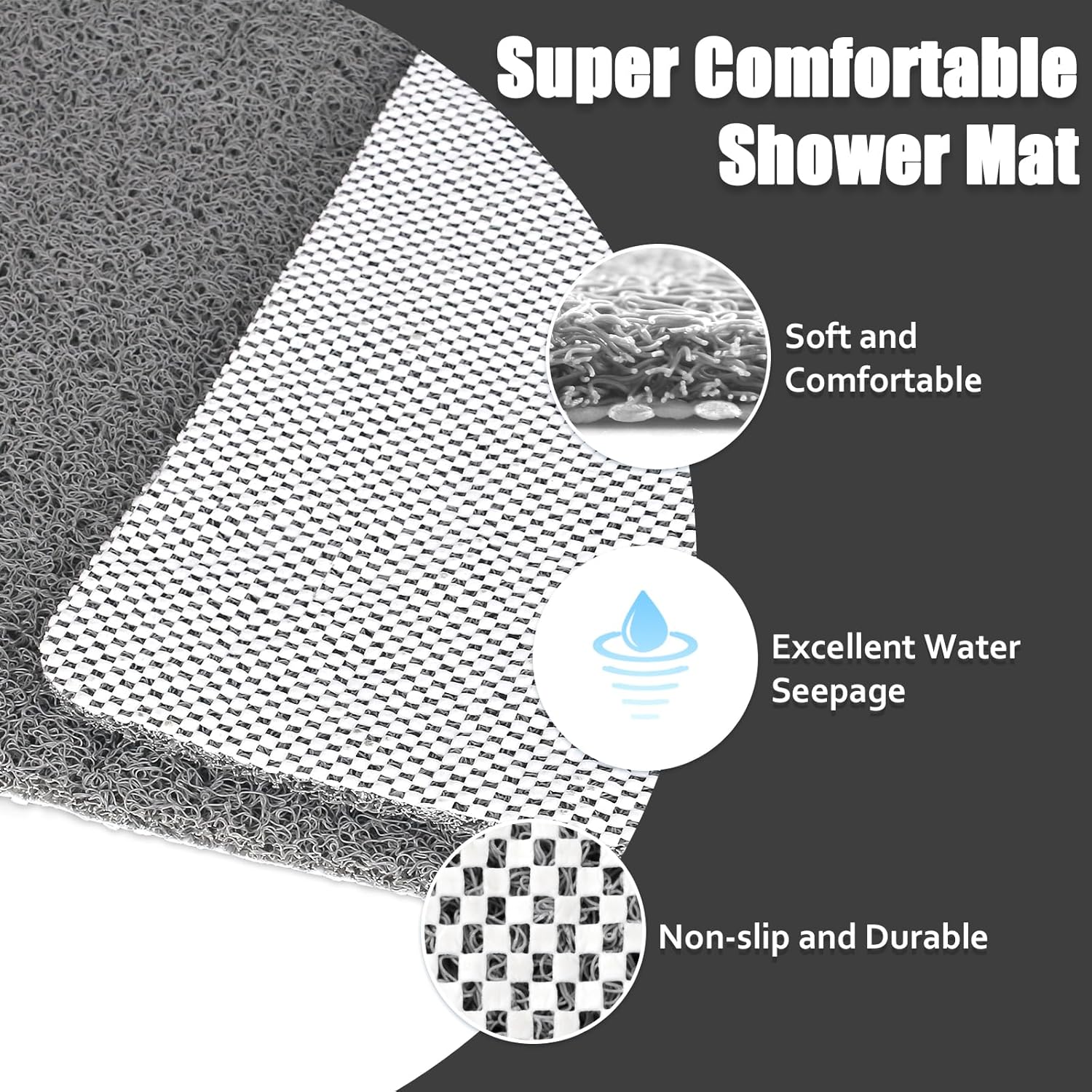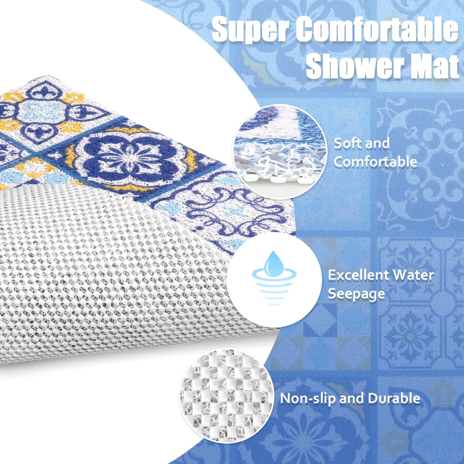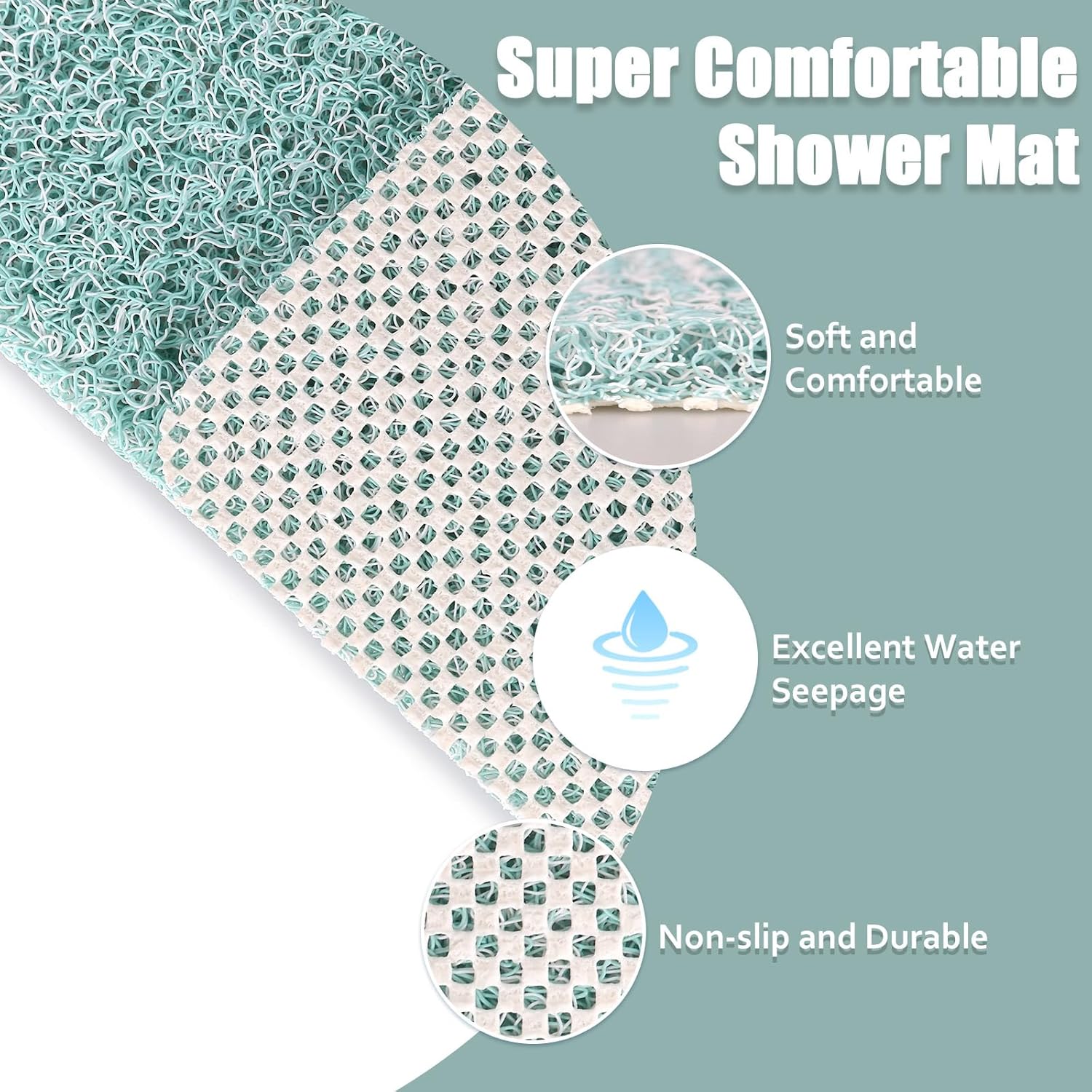 Super Comfortable Massage Anti-slip Shower Mat★ZOESOE shower mats are made from high-quality PVC material, soft, durable, and anti-slip, providing a shower experience akin to standing on a soft, thick carpet.★This shower mat features a structure similar to a loofah, allowing water to flow through quickly during use, preventing water accumulation and leaving no residue.★The bottom of the shower mat has an anti-slip layer, ensuring safety and slip resistance. It is suitable for all areas of the bathroom and other slippery floor, such as kitchens, laundry rooms, and pool sides. It is not only suitable for home use but also for public places like gyms, saunas, restaurants, hospitals, nursing homes, schools, and daycare centers.Product Features:Soft, comfortable and slip-resistant, ideal for the elderly, children, and pregnant women;Features a non-slip layer on the bottom, no difficult-to-clean suction cups;Quick drainage prevents water accumulation;Easy to clean, dries quickly, leaves no stains and does not fade;Made from high-quality PVC, free from phthalates;The perfect choice for showers and all slippery floor.Note: This is a mat without suction cups and is not suitable for use in a bathtub filled with water, as the mat will float. To extend this mat's lifespan, please rinse it with a showerhead after each use and hang it in a well-ventilated area to keep it dry. The mat's texture prevents hair from clogging drains, so please clean it regularly.