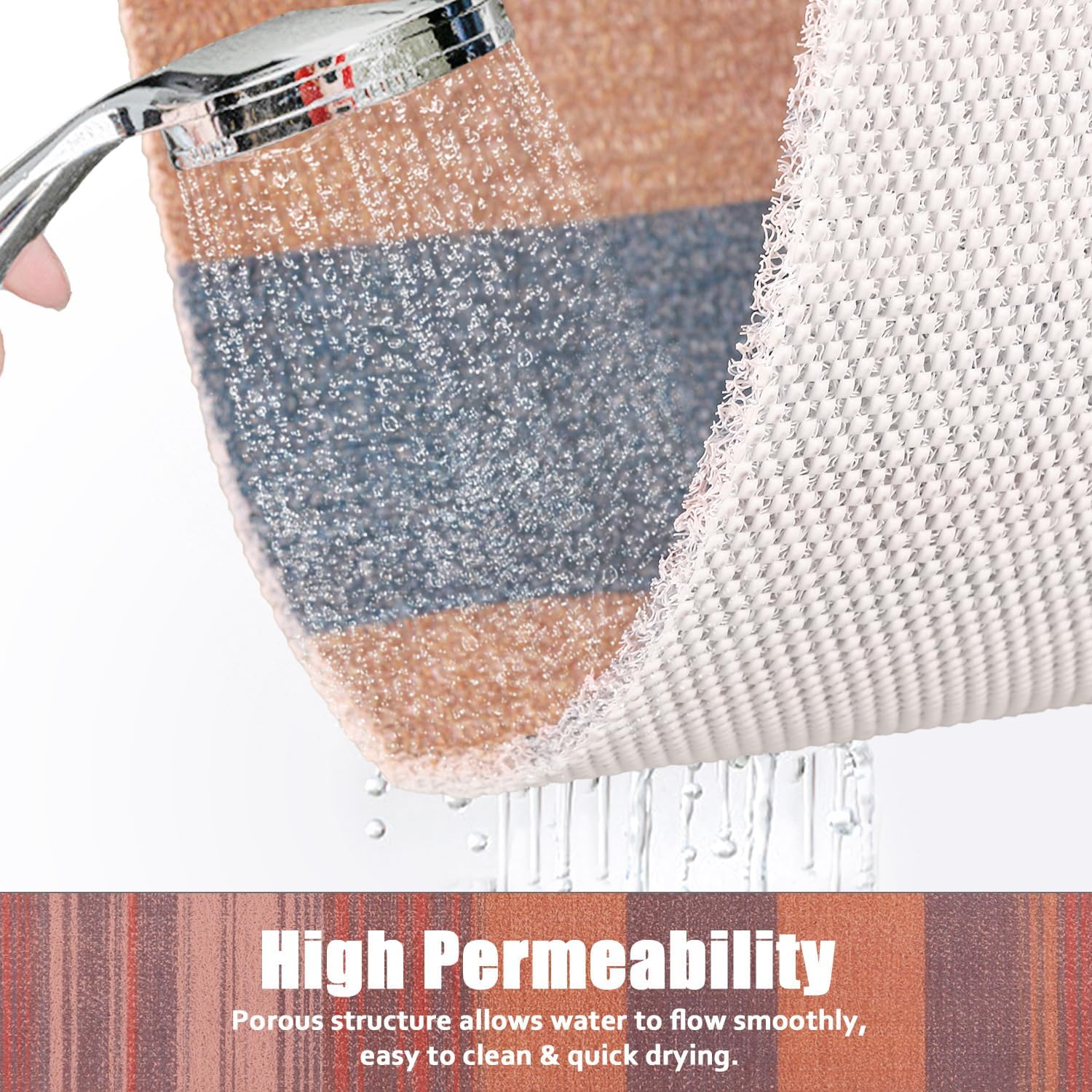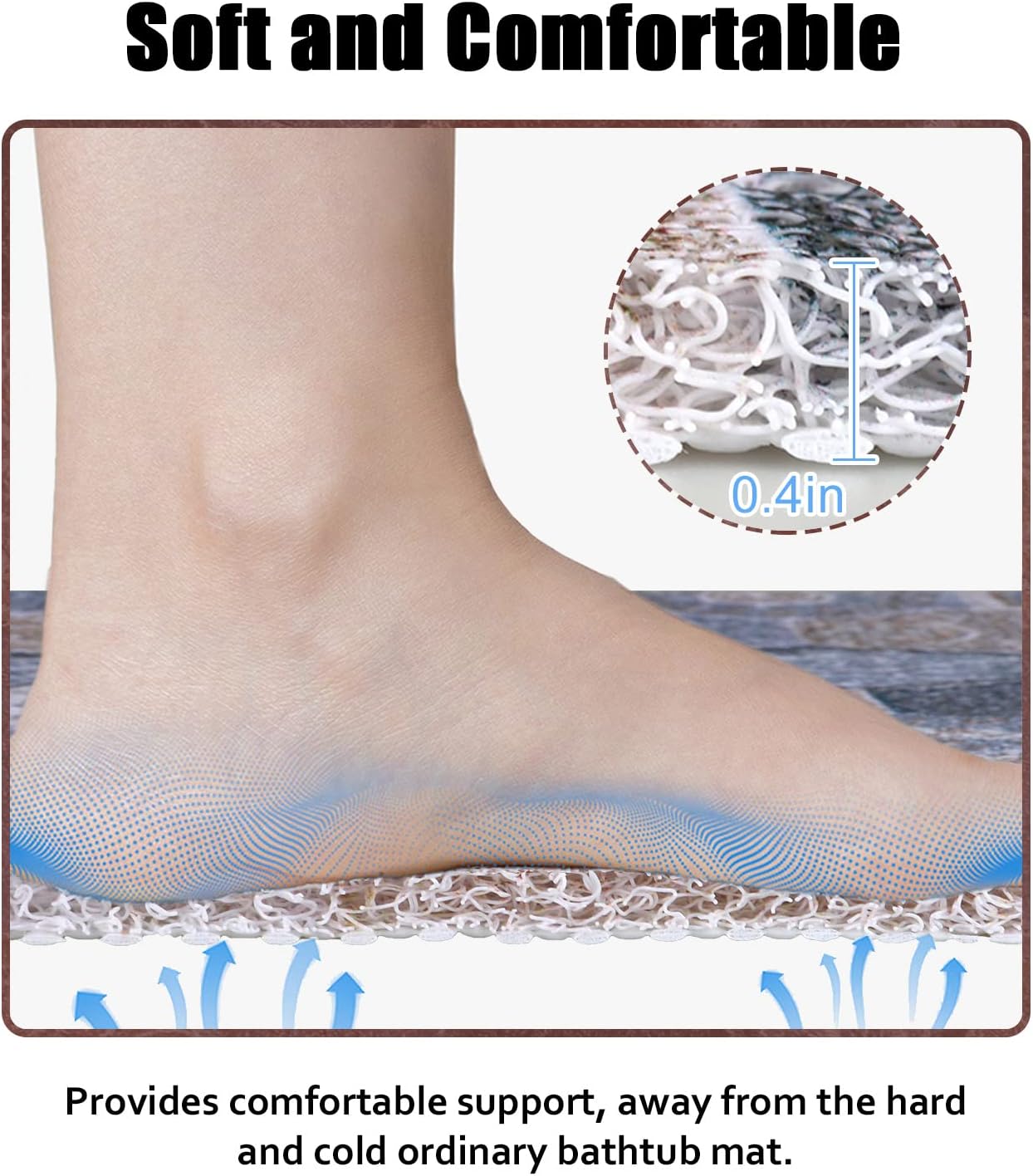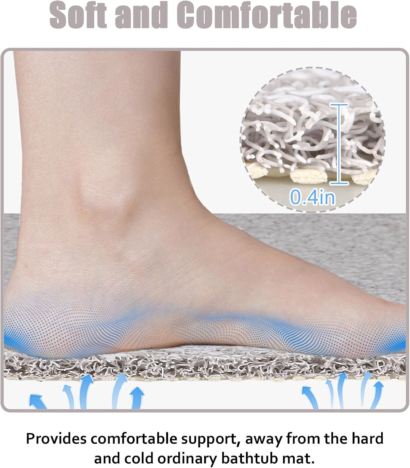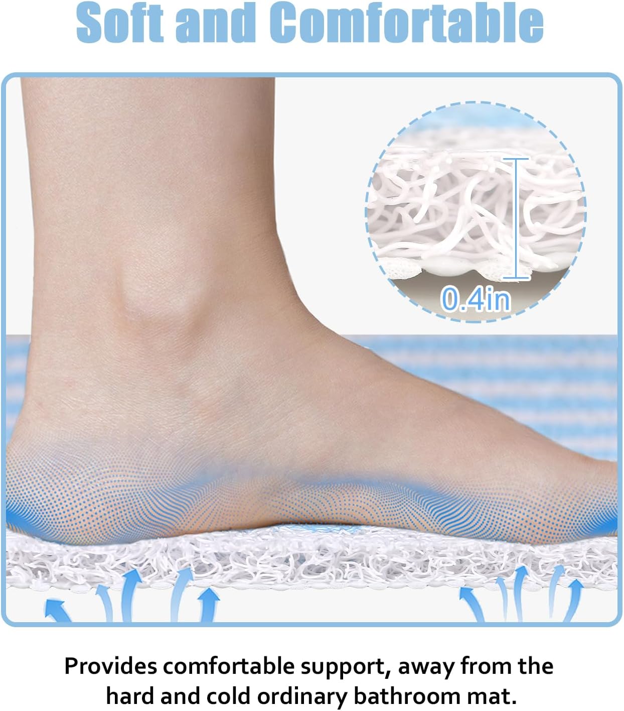 Super Comfortable Massage Anti-slip Shower Mat★ZOESOE shower mats are made from high-quality PVC material, soft, durable, and anti-slip, providing a shower experience akin to standing on a soft, thick carpet.★This shower mat features a structure similar to a loofah, allowing water to flow through quickly during use, preventing water accumulation and leaving no residue.★The bottom of the shower mat has an anti-slip layer, ensuring safety and slip resistance. It is suitable for all areas of the bathroom and other slippery floor, such as kitchens, laundry rooms, and pool sides. It is not only suitable for home use but also for public places like gyms, saunas, restaurants, hospitals, nursing homes, schools, and daycare centers.Product Features:Soft, comfortable and slip-resistant, ideal for the elderly, children, and pregnant women;Features a non-slip layer on the bottom, no difficult-to-clean suction cups;Quick drainage prevents water accumulation;Easy to clean, dries quickly, leaves no stains and does not fade;Made from high-quality PVC, free from phthalates;The perfect choice for showers and all slippery floor.Note: This is a mat without suction cups and is not suitable for use in a bathtub filled with water, as the mat will float. To extend this mat's lifespan, please rinse it with a showerhead after each use and hang it in a well-ventilated area to keep it dry. The mat's texture prevents hair from clogging drains, so please clean it regularly.
