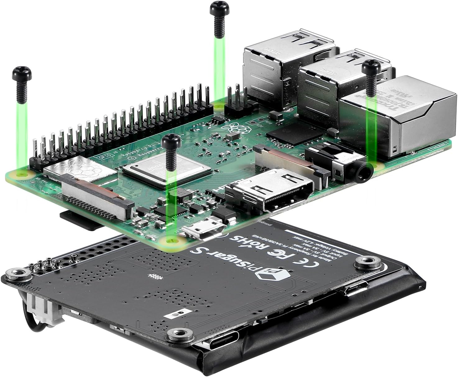 PiSugar S Plus is a portable power supply platform designed for Raspberry Pi 2/3A+/3B/3B+/4B. It is a complete UPS with a continuous output capability of 5V 3A. FEATURES Easy Install: Install in 30 secs. Connect Raspberry Pi from the bottom without soldering, does not occupy GPIO headers. GPIO button: It can trigger the device to turn on when it is turned off, and it can be used as a custom button after turning on (when the automatic power-on function is turned off) Extensible: Power input/output pads are provided on the circuit board, which can be equipped with any 5V standard charging devices, such as solar panels and QI wireless charging. Package contains: 1 x battery module 4 x screws