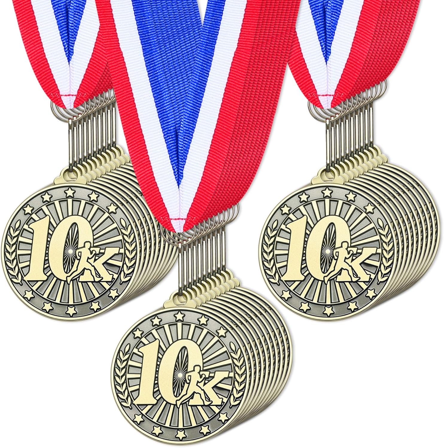 Features: These medals for awards serve as the symbol of recognition and a meaningful gift for anyone wishing to acknowledge someone's talent or accomplishment. These award medals make for an ideal choice in school matches, rewarding participants and incentivizing students' performance. Specifications: Medals material: metal Color: Medals: gold Ribbons: white, red, blue Medals size: about 2 inches/ 5 cm in diameter Package includes: 100 x Award medals with neck ribbons Notes: Manual measurement, please allow slight errors on size. The color may exist a slight difference due to different screen displays. Winding risk may exist, please keep our product away from children.