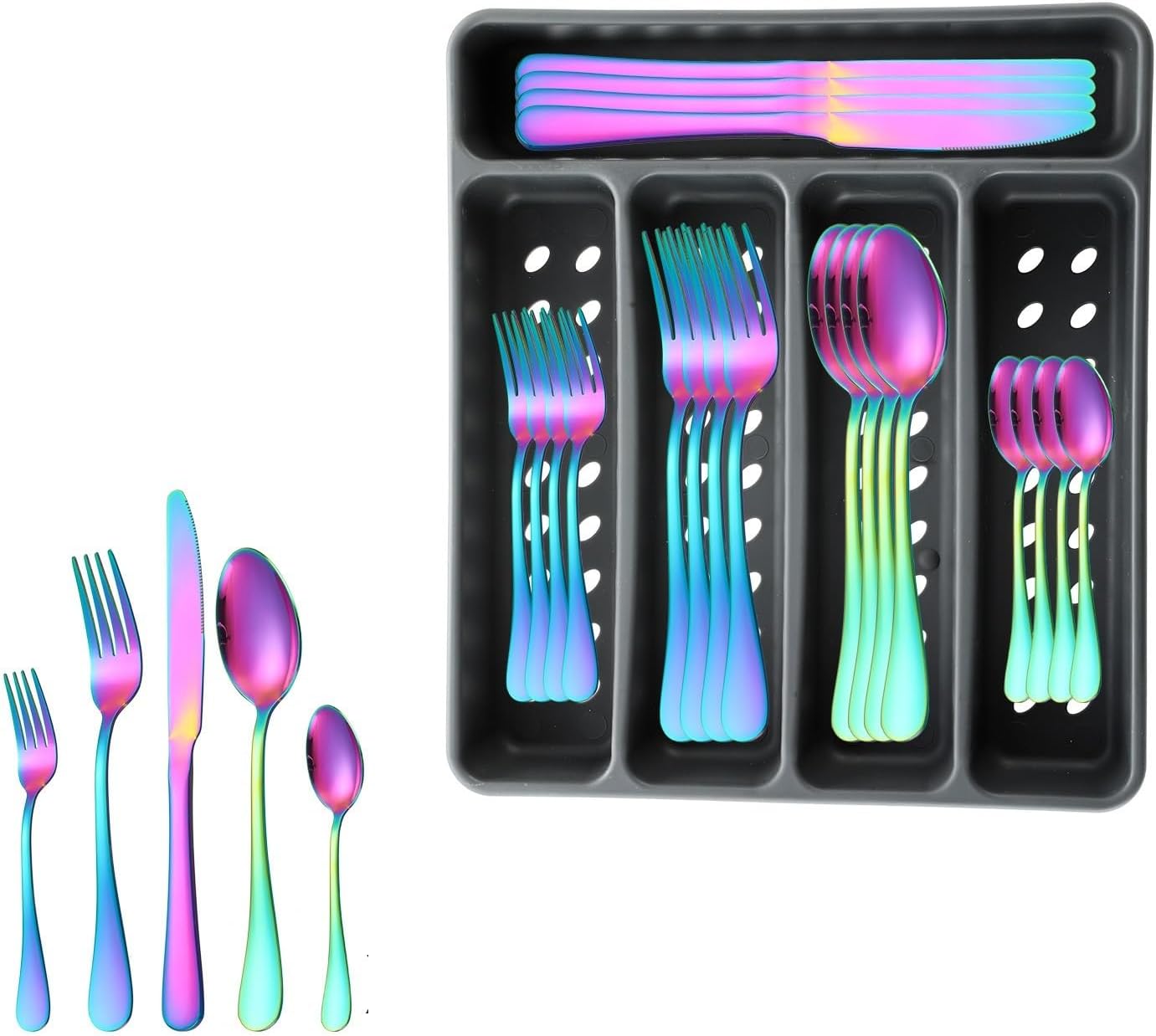 Item No.: 1010 tablewareMaterial: Stainless steelPolishing process: cloth wheel polishing (mirror polishing)Set list: knife/fork/spoon/small spoon/small forkStyle: Modern and simpleStainless steel material: 410 stainless steelSpecifications: [Silver] 20-piece set (including cutlery storage box)Specifications: [Gold] 20-piece set (including tableware storage box)Specifications: [Rose gold] 20-piece set (including cutlery storage box)Specifications: [Rainbow Color] 20-piece set (including tableware storage box)Specifications: [Black] 20-piece set (including cutlery storage box)Specifications: [Black and gold] 20-piece set (including tableware storage box)Specifications: [Green Gold] 20-piece set (including tableware storage box)Specifications: [Pink Gold] 20-piece set (including tableware storage box)Specifications: [Red and gold] 20-piece set (including tableware storage box)Specifications: [Blue and gold] 20-piece set (including tableware storage box)Specifications: [White Gold] 20-piece set (including tableware storage box)Product quality level: first-classStyle: Modern and simpleColor: Silver/Gold/Rose Gold/Rainbow/BlackStyle type: Simple styleProduct category: Knife, fork and spoon set.About our BrandOur brand is GOODJAYVEN. We have always been committed to Household items. Do our best to bring more creative products to our customers.