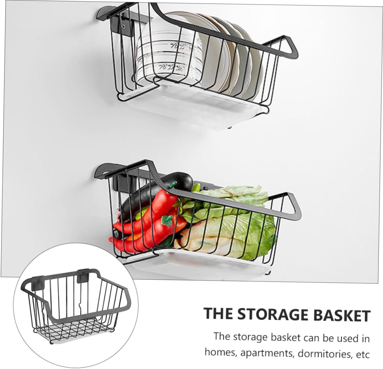 Package Include 1 x storage basket (with drain pan) Characteristics - Material: Steel metal colander. - Size: 32.50X20.50X16.50cm/12.77X8.06X6.48in storage drying basket. - Color: Black metal hanging basket. - Store as you like, hanging or standing. The storage basket can be used in homes, apartments, dormitories, etc berry colander. - Using high-temperature baking varnish, no rust, thicker bottom, stronger load-bearing, sturdy and metal strainer. - household storage of fruits, washing supplies, clothes, sundries, etc household storage basket. - Made of steel, and not easily deformed, you can use it with confidence dorm clothes storage basket. - Iron hanging design, easy to use, does not take up too much space, is not afraid of water, and does not rust household drain basket.Goods Informationwall hanging baskets for storage This basket is made of the finest steel materials, specially designed to hold your sundries.stainless colander Large capacity, simple design, give you a clean and orderly home.household storage basket It keeps your things in good order and your home will become order.fruit and vegetable basket This is a practical storage basket for your essentials